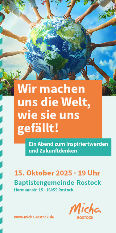 Die Micha Lokalgruppe Rostock lädt Interessierte und Gemeindeleitungsmitglieder zu einem Infoabend mit Abendessen ein, bei dem die Referentin Regina Möller (Referentin für zukunftsfähiges Wirtschaften im Kirchenkreis Mecklenburg) die Aktion „ÖkoFaire Gemeinde“ vorstellen wird.